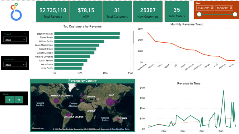 This project performs a complete business analytics process using Google BigQuery and Microsoft Power BI on the public dataset thelook_ecommerce.